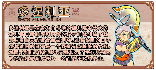 锻炼出了的强健肌肉和耐力与多涅利亚相当是一名可靠的战士。